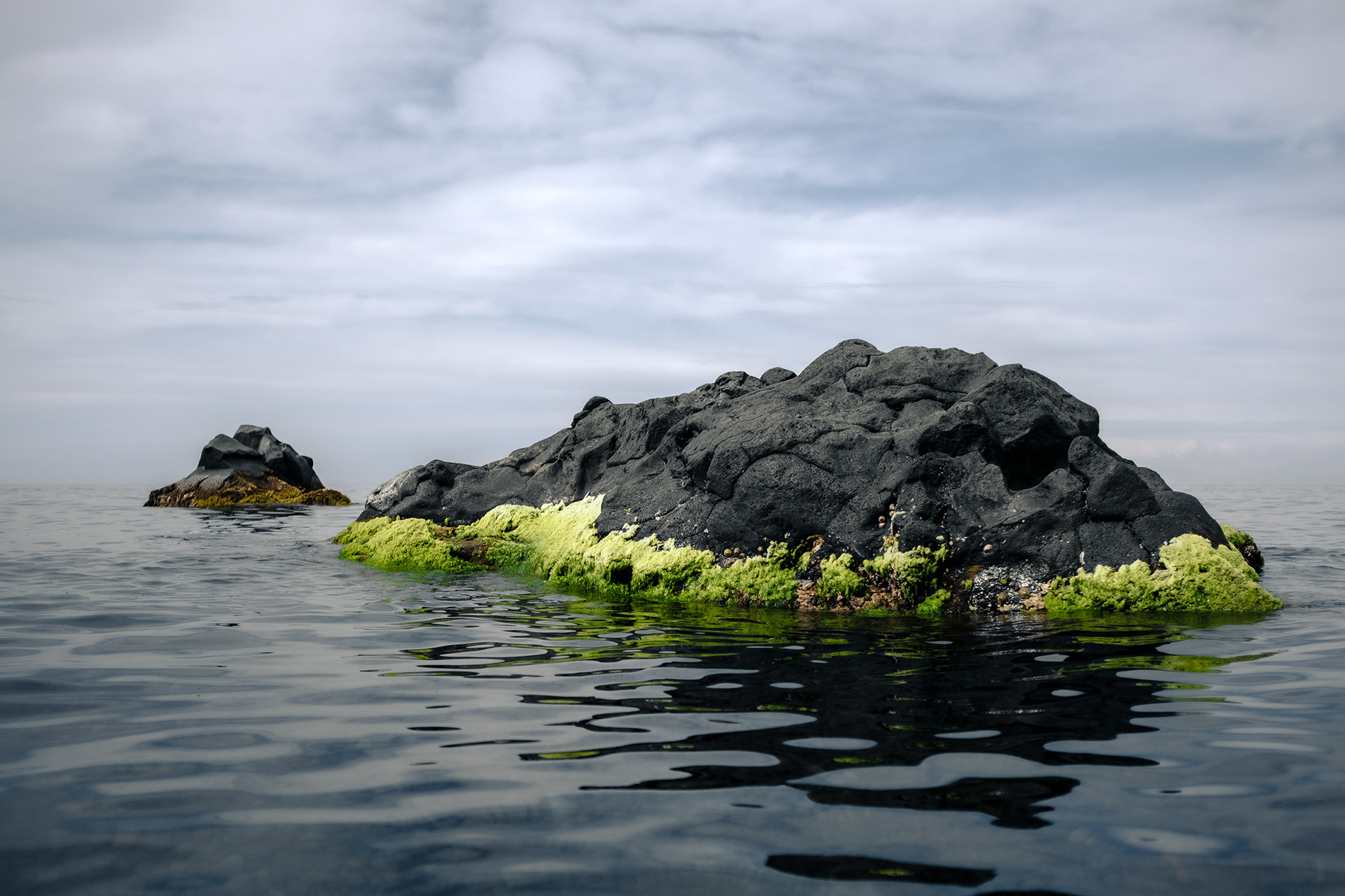 Ici et là, ils surgissent du ressac. Aussi endormi que nos mythes, aussi vieux que notre histoire, ils s'effacent peu à peu. Chaque vague emporte leur histoire. De leurs oreilles et de leurs yeux noirs, ils ont entendu et vu le bateau d'Ulysse.